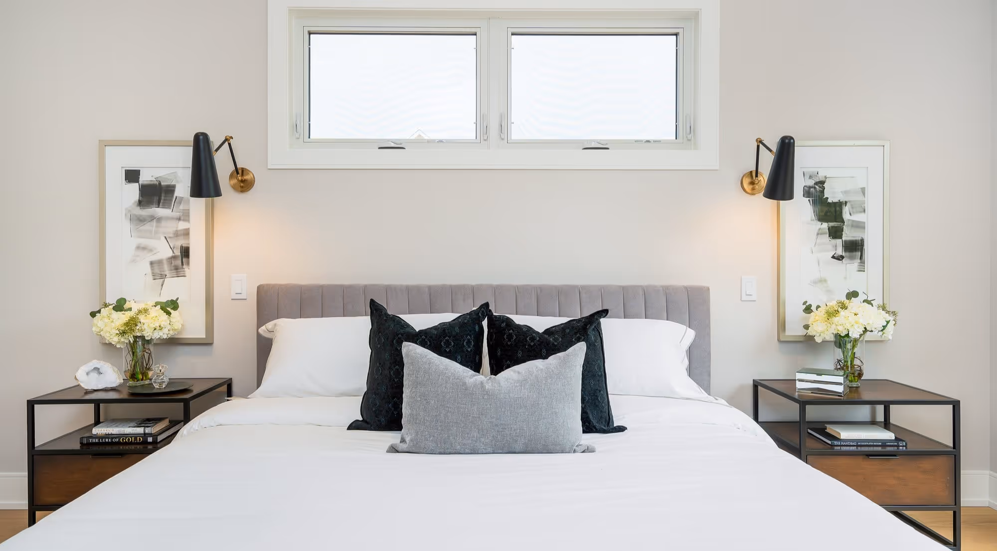 In the primary suite, large windows fill the room with soft natural light while framing tranquil views. A generous walk-in closet offers ease, while the spa-inspired ensuite, complete with double vanity and glass-enclosed shower, transforms daily routines into moments of quiet indulgence.