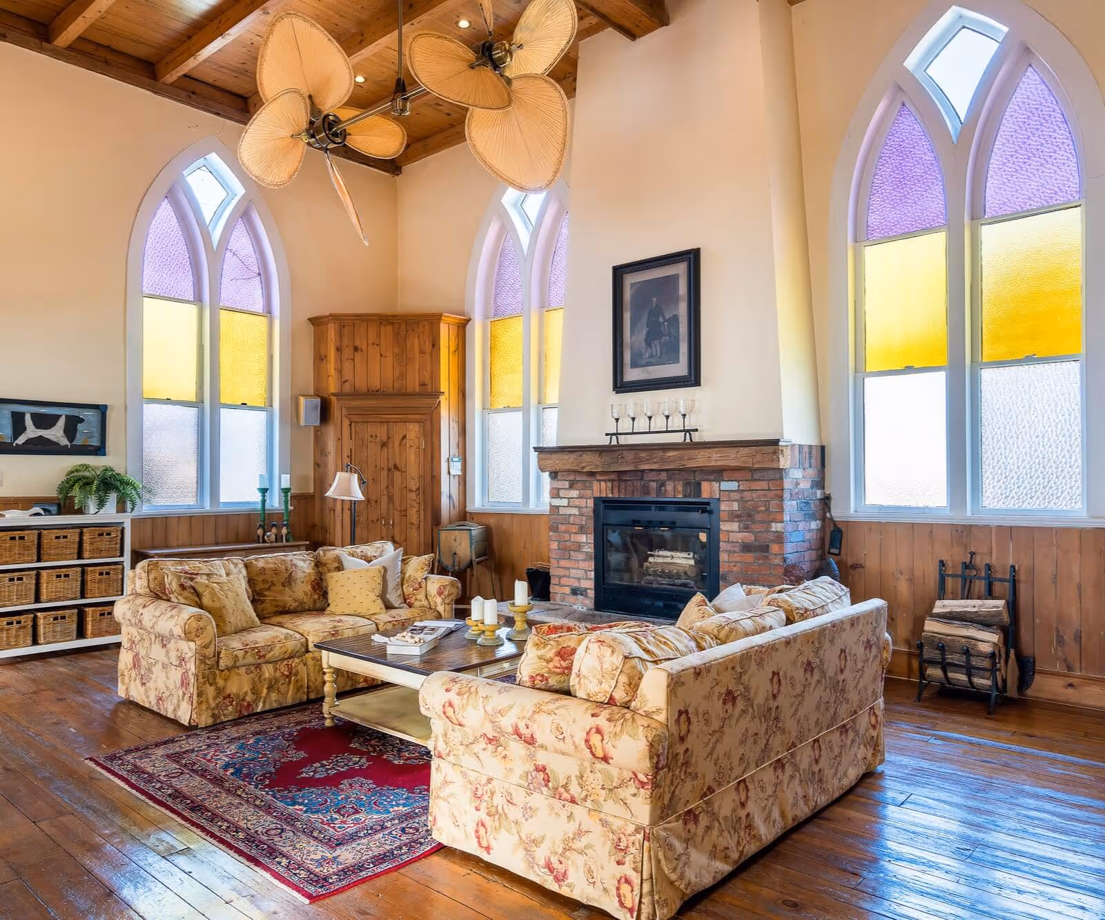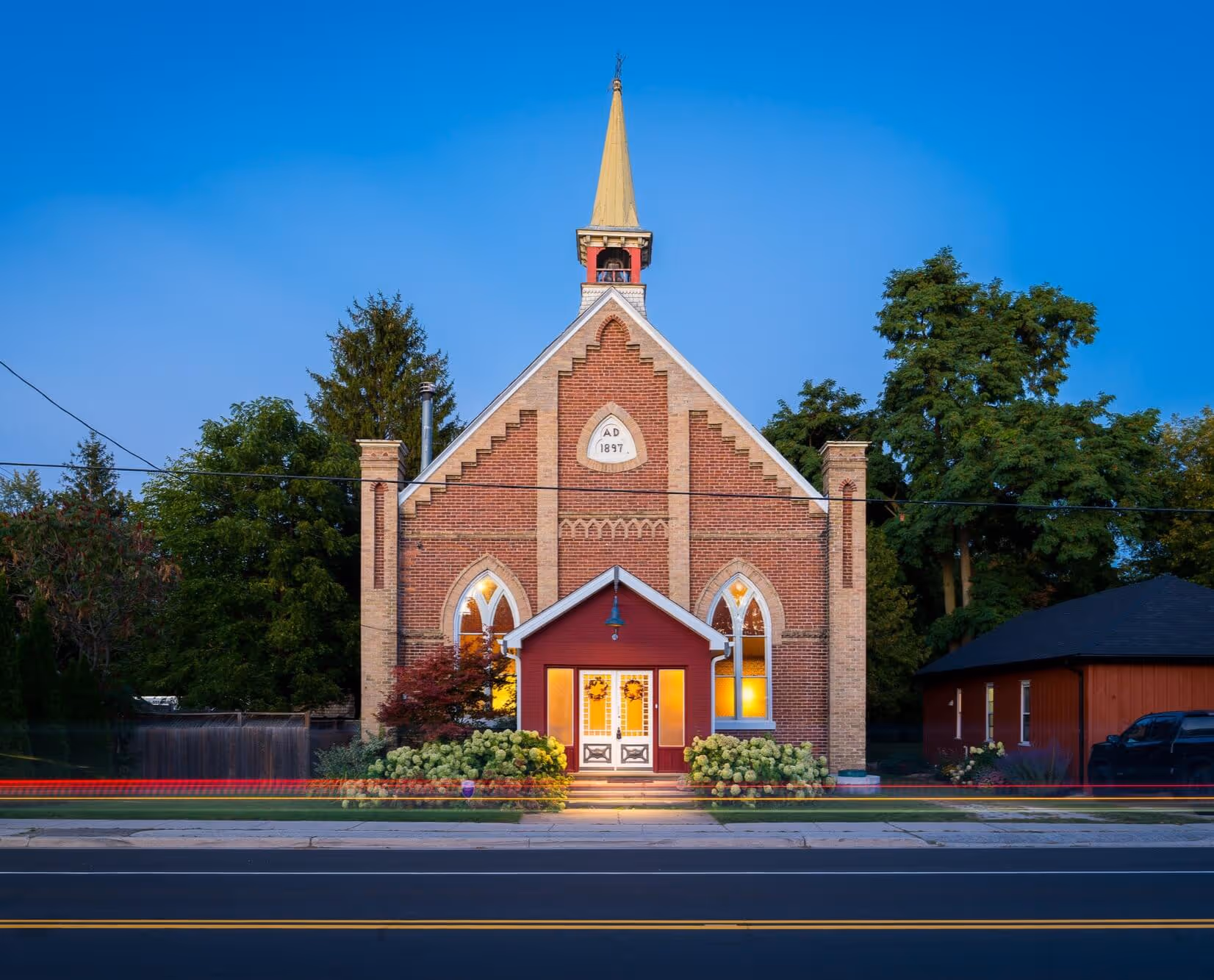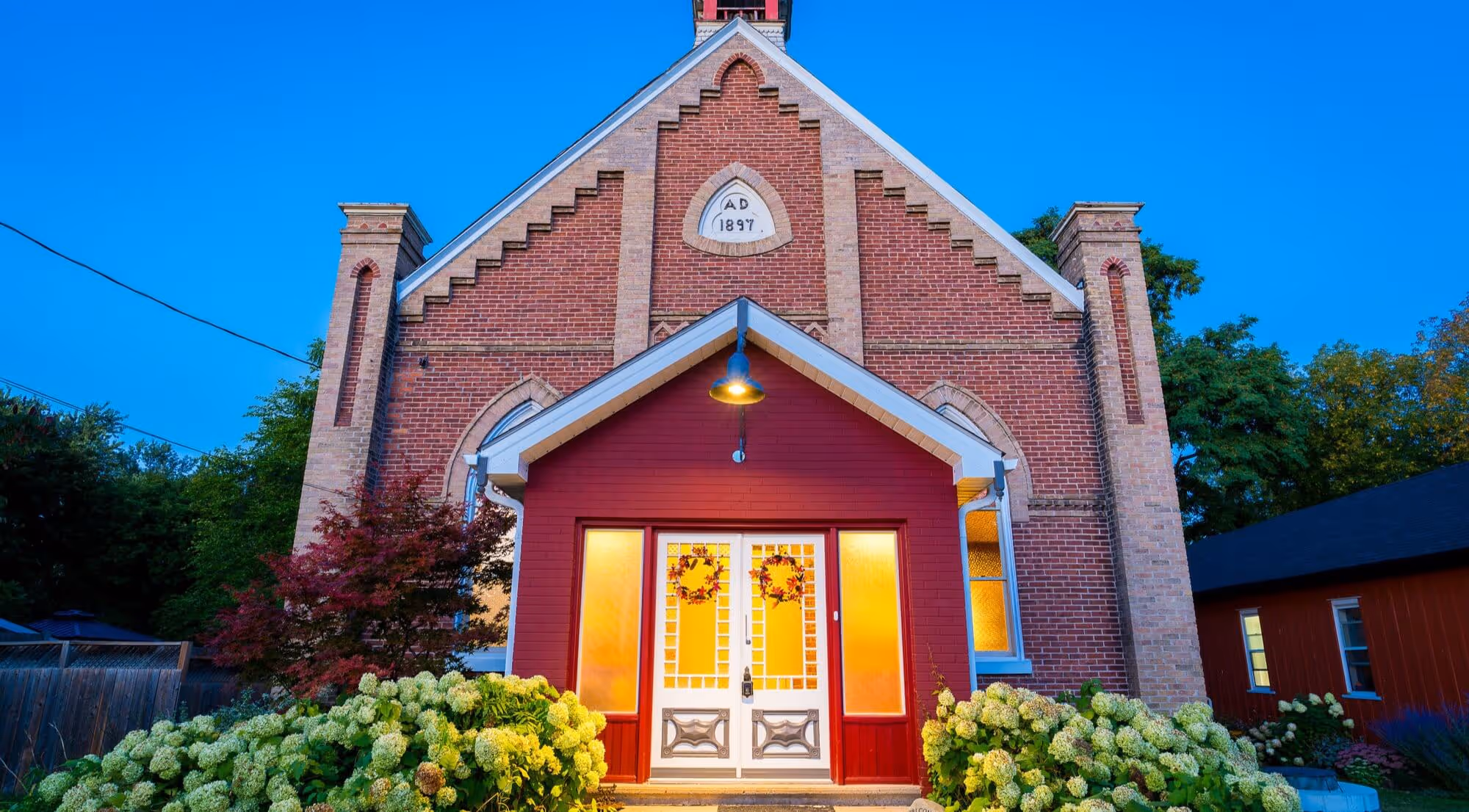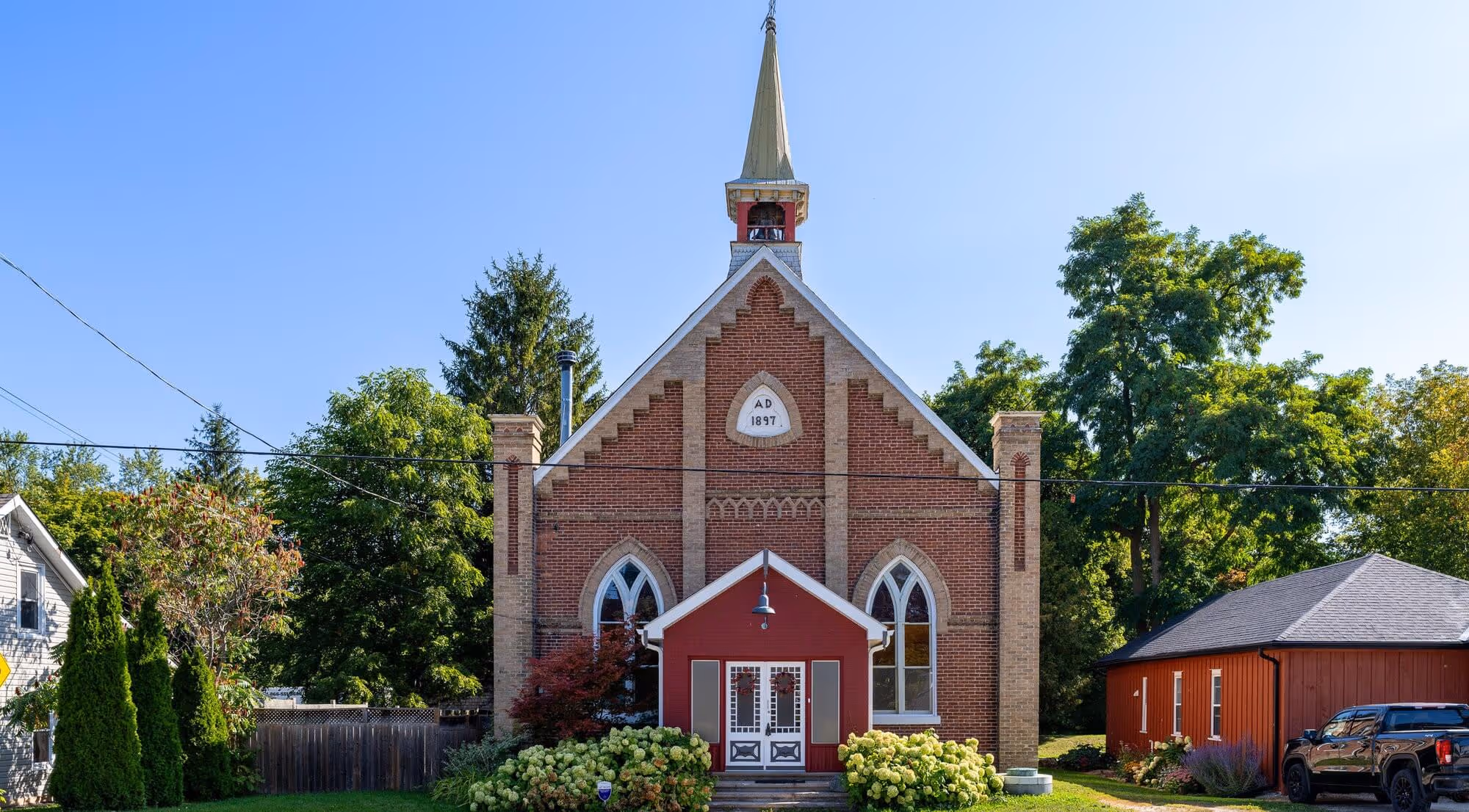 Built in 1897 and beautifully reborn, this former church stands as a testament to care and craftsmanship. Its red brick façade, arched windows, and iconic steeple still hold their original grace—yet every inch feels welcoming and lived in, a gathering place reimagined for modern life.