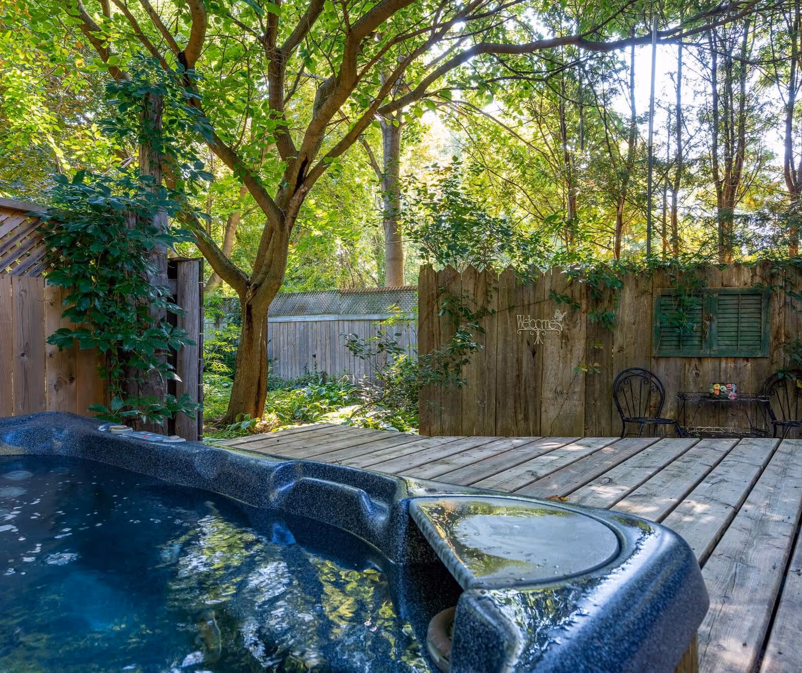 Tucked beneath mature trees, the backyard is an outdoor haven. Lounge in the oversized hot tub, gather around the firepit for s’mores, or dine al fresco on the generous deck. With sheds for potting and tools included, this space is ready to be lived in, not labored over.